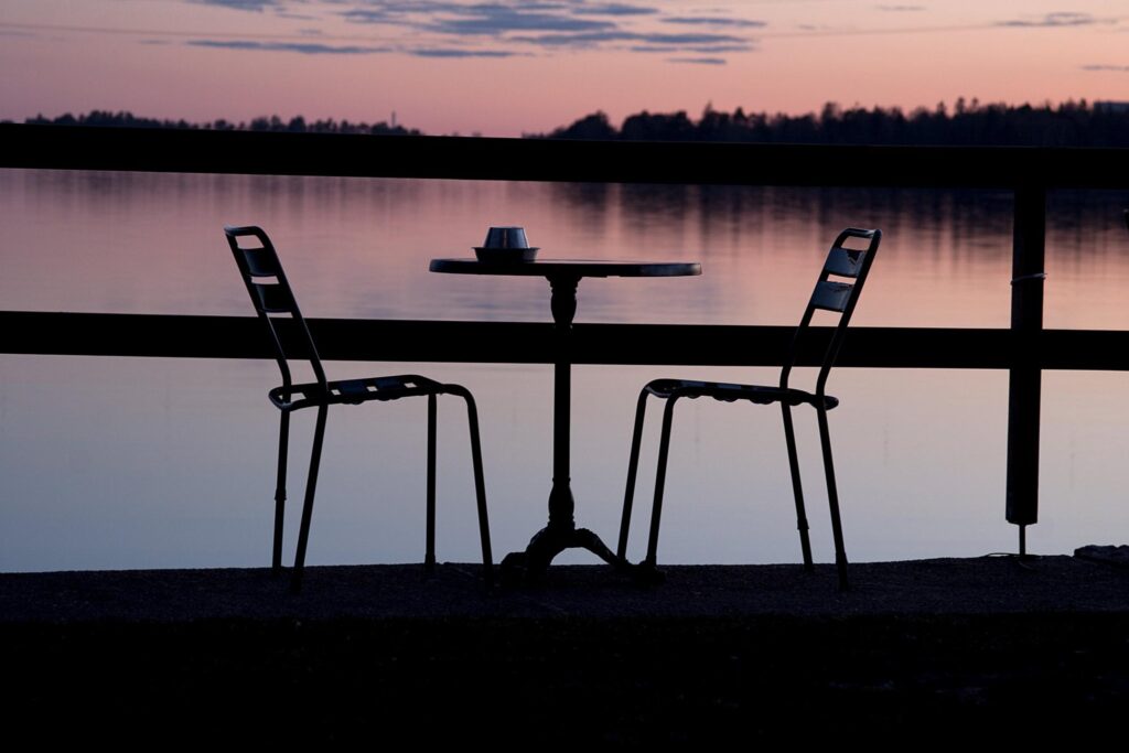 I lean on the deck rail and savor dusk’s drift toward night — the glitter-caps rippling Kachemak Bay….