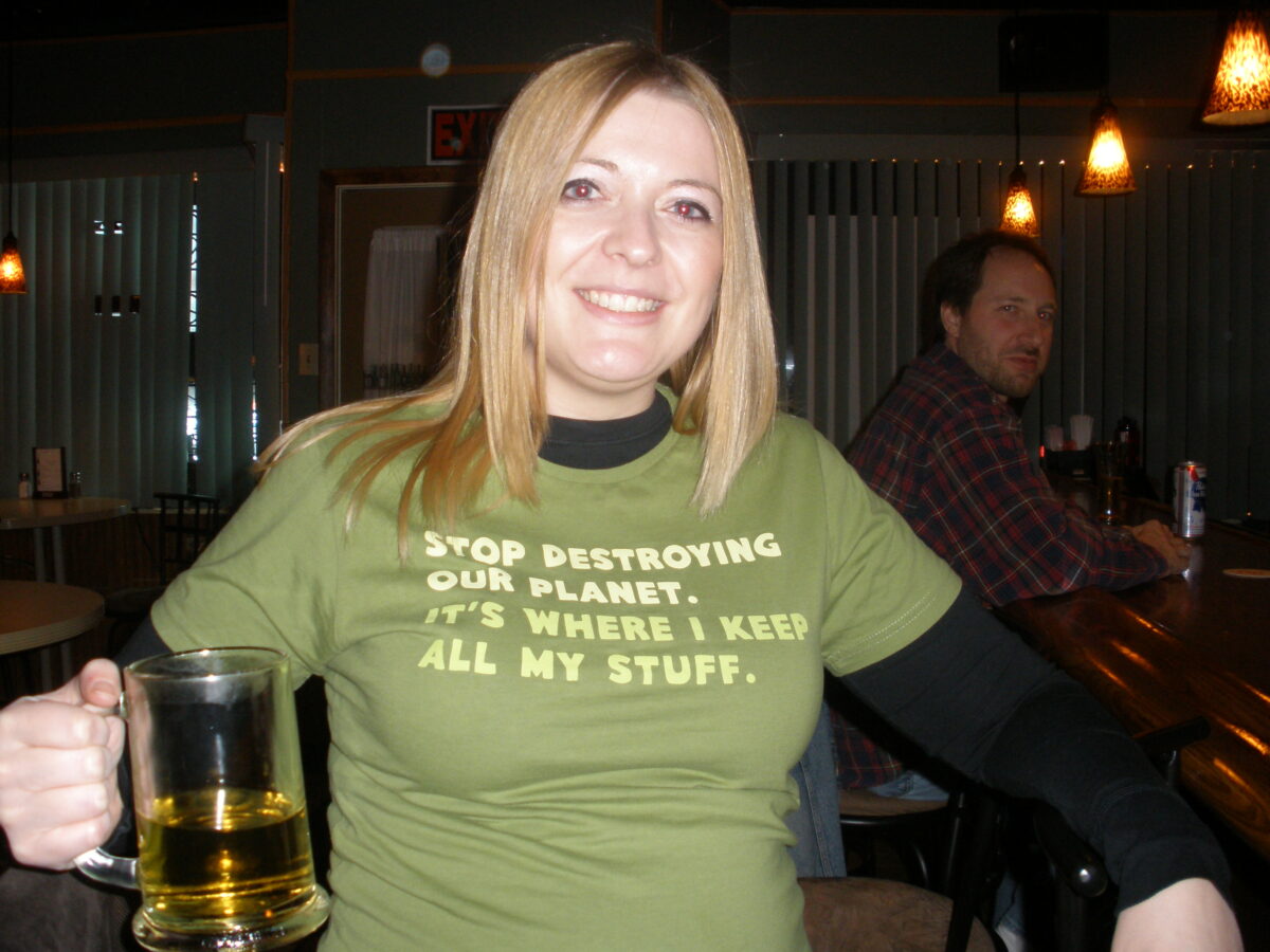 Following up last month's photo with another old pic of one of my other favorite Threadless tees. This month features a prop completely unrelated to the tee however. Then again, that beer IS (was) part of my stuff.