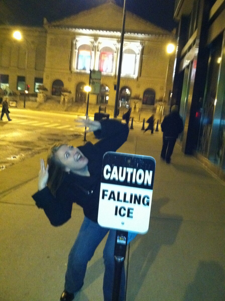 Usually I include a picture of myself wearing a funny (in my opinion) shirt. Last month, though, I did socks. This month, I am doing a prop. This was in Chicago during AWP. I just thought the sign was funny.