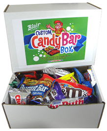 Custom Candy Box — 24-pack of candy bars from Blair Candy Company’s online store, www.blaircandy.com.