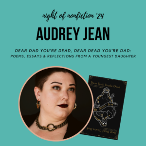 Audrey Jean (Dear Dad You’re Dead, Dear Dead You’re Dad: Poems, Essays, and Reflections from a Youngest Daughter)