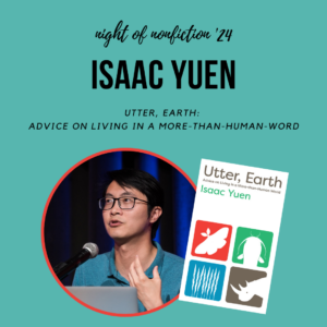 A first-generation Hong Kong Canadian writer based in Berlin, Isaac Yuen’s short fiction and creative nonfiction has been published in AGNI, Gulf Coast, Orion, Pleiades, The Pushcart Prize Anthology, Shenandoah, and of course, Hippocampus, among other places. He was a nature writer-in-residence at the Jan Michalski Foundation for Literature in Switzerland, a Science Meets Fiction fellow at the HWK Institute in Advanced Study in Germany, and will be an upcoming artist-in-residence with the La Napoule Foundation in France. Utter, Earth: Advice on Living in a More-than-Human World is his debut essay collection.