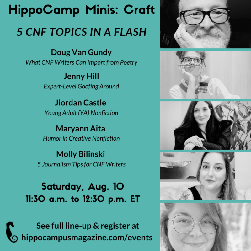 Five speakers will share bite-sized wisdom + practical takeaways on a topic they’re passionate about, all related to writing creative nonfiction.